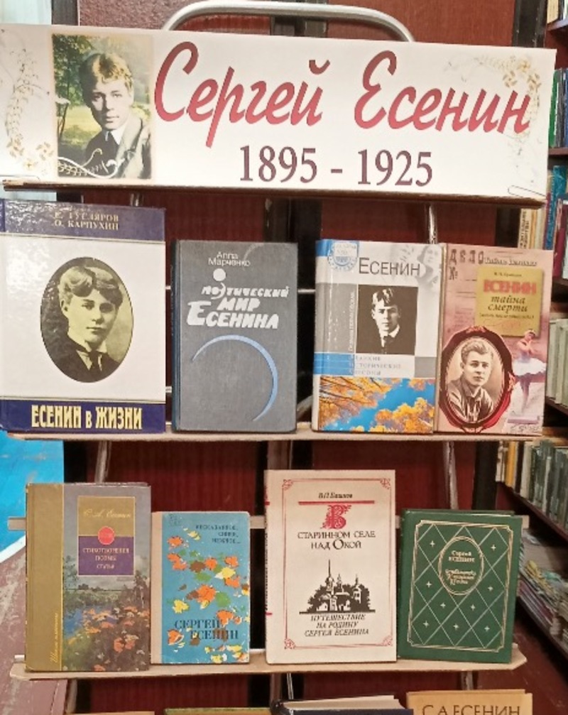 На абонементе «Юность» Центральной городской библиотеки оформлена выставка книг, посвящённая творчеству С. А. Есенина.
