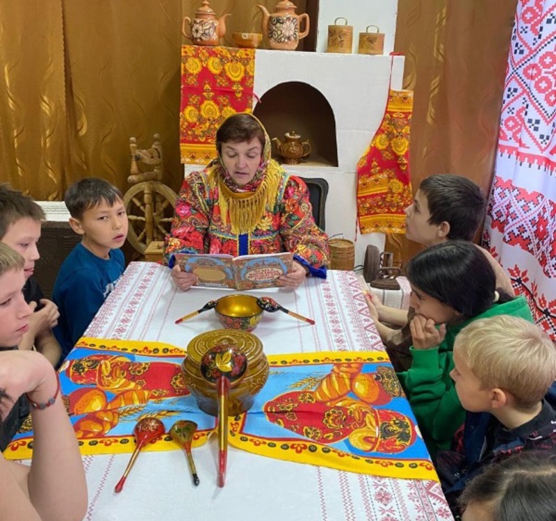Ребята обобщили знания о народных промыслах России. Занятия проходили в классе, стилизованном под русскую избу. Здесь дети смогли не только воочию увидеть предметы русского быта, но и потрогать их руками, узнать об их предназначении.