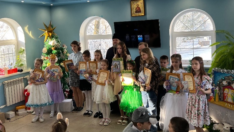 Прошла торжественная церемония вручения дипломов и подарков ребятам за участие в различных конкурсах в первом полугодии. Все ребята получили подарки от настоятеля храма отца Олега и фотографировались с Дедом Морозом и Снегурочкой.