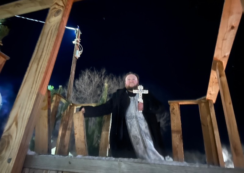 Чин освящения воды провел иерей Сергий Черкасов. Пела вместе с ним его супруга, регент храма Наталия. Примерно за час-полтора после освящения купели успели искупаться около пятидесяти человек. Среди смелых были женщины и даже дети.