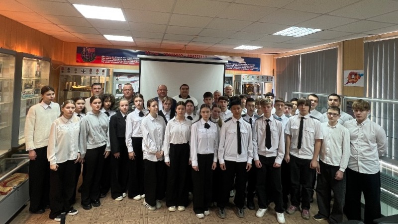Ветеран Чеченской войны, член Знаменского местного отделения Астраханского РО ВООВ «Боевое братство» Алексей Родионов прошел нелегкий путь. В это время перед страной стояла задача победить терроризм. Это было непросто. Многие наши солдаты погибли, выполняя свой долг. Председатель Знаменского местного отделения Алексей Бобров также принимал участие в Чеченской кампании. Он рассказал о своих боевых товарищах — выпускниках Новосибирского высшего военного командного училища, которое и сам закончил. На данный момент училище воспитало 68 Героев России. Среди них и наш земляк, погибший на СВО, Евгений Козловский. О нем был продемонстрирован трогательный ролик. Евгений сам писал стихи. И его произведение о Родине в конце встречи озвучили ведущие.